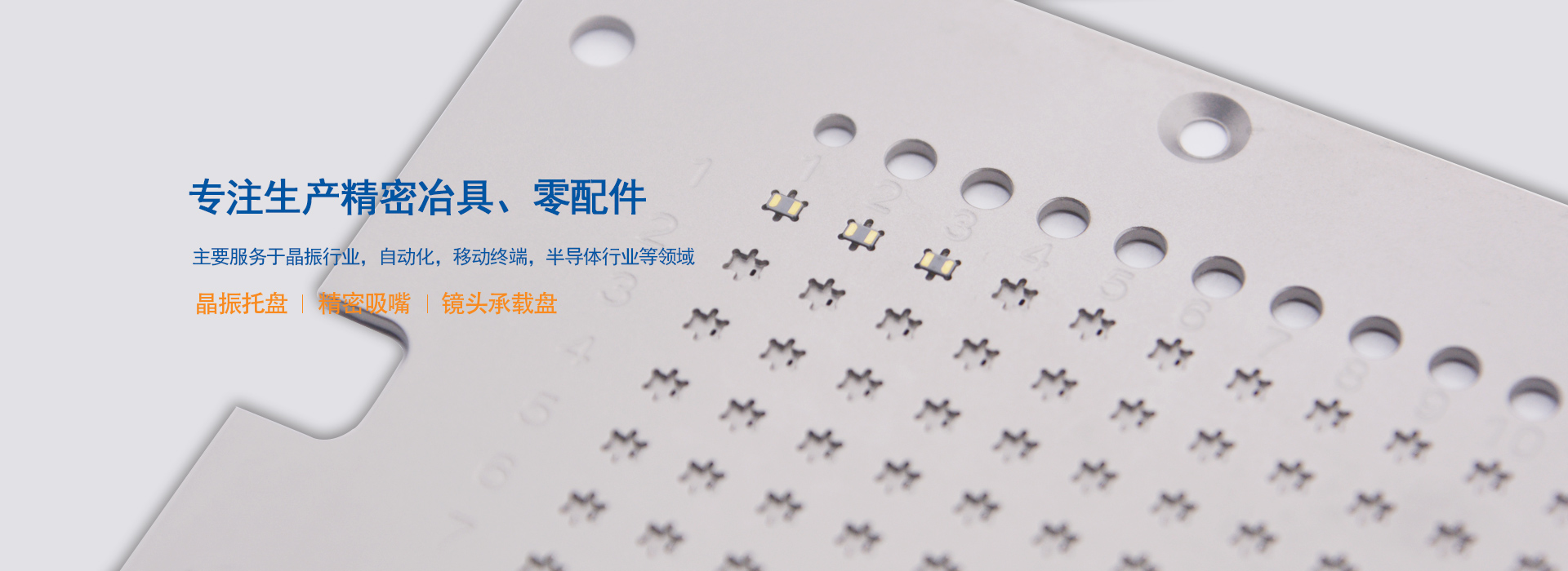 無錫吉微精密電子有限公司專業(yè)生產(chǎn)精密冶具、零配件等以及從事精密冶具配套設(shè)備生產(chǎn)的高新技術(shù)企業(yè),公司自2013成立以來,建立國際標(biāo)準(zhǔn)化管理體系,2018年曾通過ISO9001:2015質(zhì)量體系認(rèn)證。同時獲得“國家科技型中小企業(yè)”榮譽證書,包括專利證書已經(jīng)50+。主要供應(yīng):晶振托盤、精密吸嘴、鏡頭承載盤等。